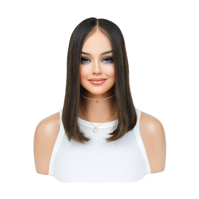 These exquisite 16-inch premium human hair wigs feature a subtly layered cut and a delicate lace top, creating a sophisticated and natural-looking style. Crafted from the finest Remy human hair, they offer an incredibly soft, sumptuous feel and a flawless appearance. Designed with the modern Jewish woman in mind, these high-quality wigs provide a comfortable, seamless wear and a stunningly realistic look that enhances one's natural beauty. Durable and long-lasting, these wigs are the epitome of elegance and quality.