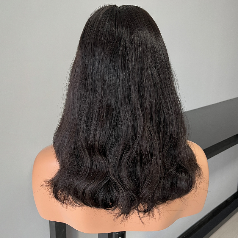 These exquisite 18-inch premium human hair wigs feature a subtly layered cut and a delicate lace top, creating a sophisticated and natural-looking style. Crafted from the finest Remy human hair, they offer an incredibly soft, sumptuous feel and a flawless appearance. Designed with the modern Jewish woman in mind, these high-quality wigs provide a comfortable, seamless wear and a stunningly realistic look that enhances one's natural beauty. Durable and long-lasting, these wigs are the epitome of elegance and quality.