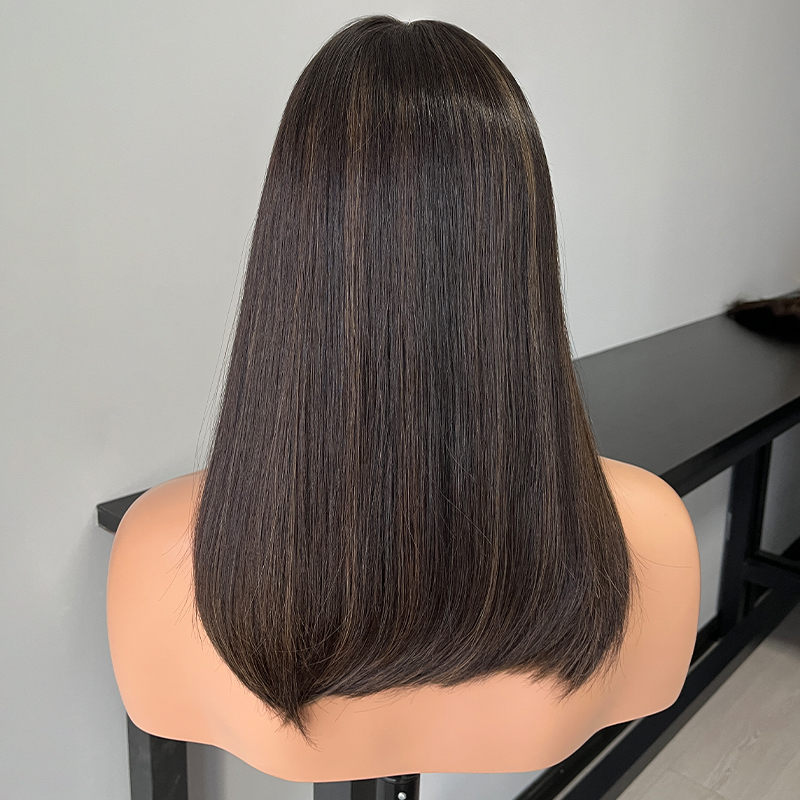 These exquisite 18-inch premium human hair wigs feature a subtly layered cut and a delicate lace top, creating a sophisticated and natural-looking style. Crafted from the finest Remy human hair, they offer an incredibly soft, sumptuous feel and a flawless appearance. Designed with the modern Jewish woman in mind, these high-quality wigs provide a comfortable, seamless wear and a stunningly realistic look that enhances one's natural beauty. Durable and long-lasting, these wigs are the epitome of elegance and quality.
