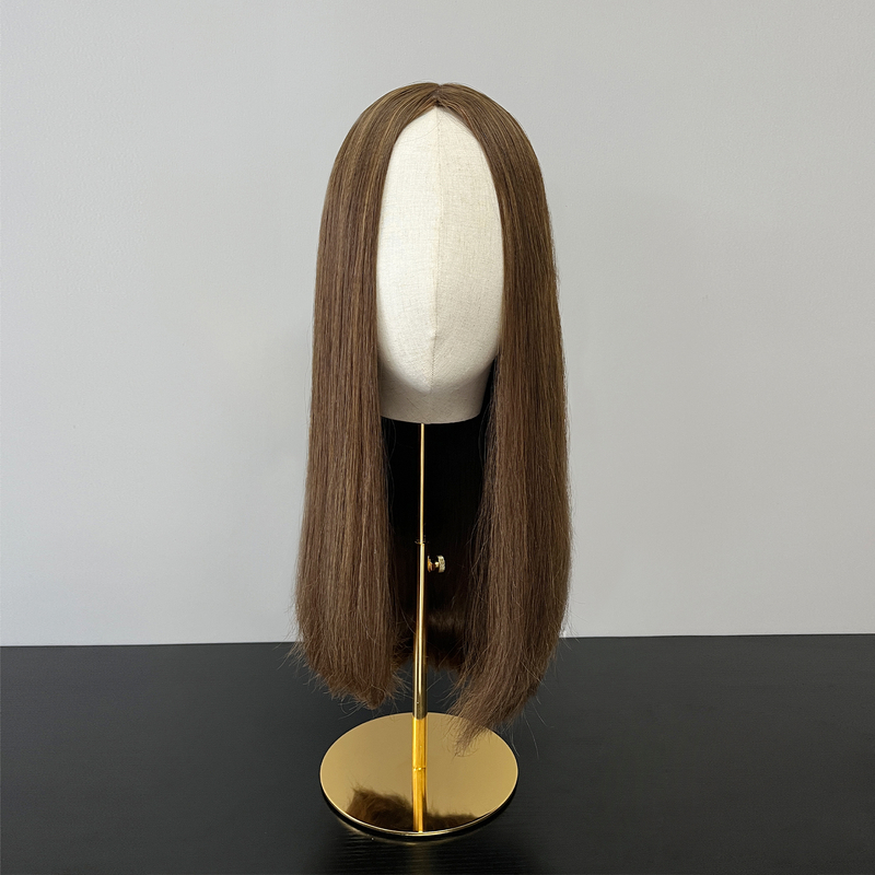 These exquisite 18-inch high-end human hair wigs feature a subtly layered cut and a delicate silk top, creating a stunning, natural-looking style. Crafted from the finest premium Remy human hair, they offer an incredibly soft, high-quality feel and a flawless, realistic appearance. Durable and long-lasting, these exceptional wigs provide a beautifully elegant look that enhances one's natural beauty. The silk top offers a seamless, comfortable wear for all-day styling versatility. These wigs are the pinnacle of opulence and sophistication.