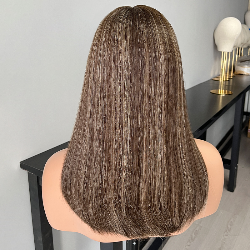 These exquisite 19-inch premium human hair wigs feature a subtly layered cut and a delicate lace top, creating a sophisticated and natural-looking style. Crafted from the finest Remy human hair, they offer an incredibly soft, sumptuous feel and a flawless appearance. Designed with the modern Jewish woman in mind, these high-quality wigs provide a comfortable, seamless wear and a stunningly realistic look that enhances one's natural beauty. Durable and long-lasting, these wigs are the epitome of elegance and quality.