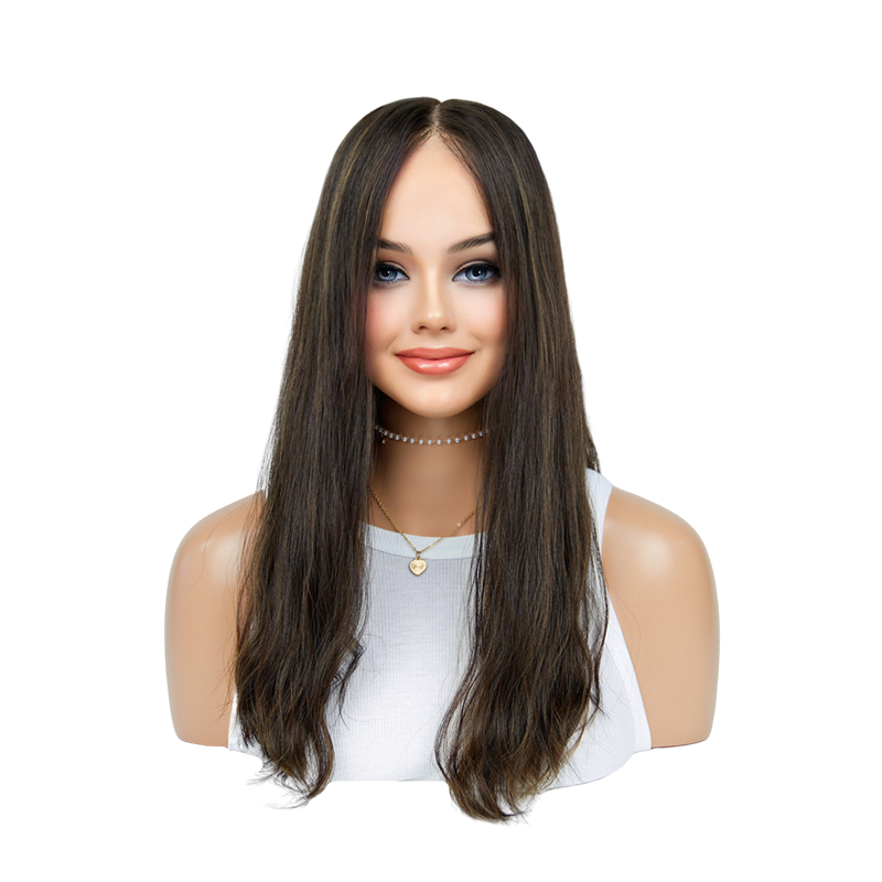 These exquisite 21-inch premium human hair wigs feature a subtly layered cut and a delicate lace top, creating a sophisticated and natural-looking style. Crafted from the finest Remy human hair, they offer an incredibly soft, sumptuous feel and a flawless appearance. Designed with the modern Jewish woman in mind, these high-quality wigs provide a comfortable, seamless wear and a stunningly realistic look that enhances one's natural beauty. Durable and long-lasting, these wigs are the epitome of elegance and quality.