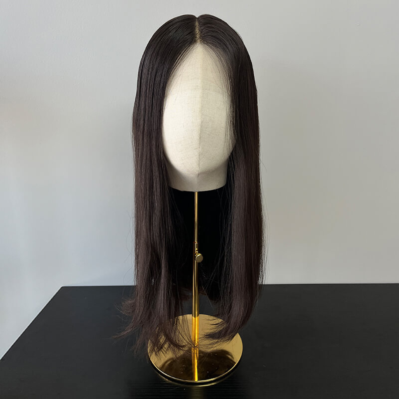 These exquisite 22-inch premium human hair wigs feature a subtly layered cut and a delicate lace top, creating a sophisticated and natural-looking style. Crafted from the finest Remy human hair, they offer an incredibly soft, sumptuous feel and a flawless appearance. Designed with the modern Jewish woman in mind, these high-quality wigs provide a comfortable, seamless wear and a stunningly realistic look that enhances one's natural beauty. Durable and long-lasting, these wigs are the epitome of elegance and quality.