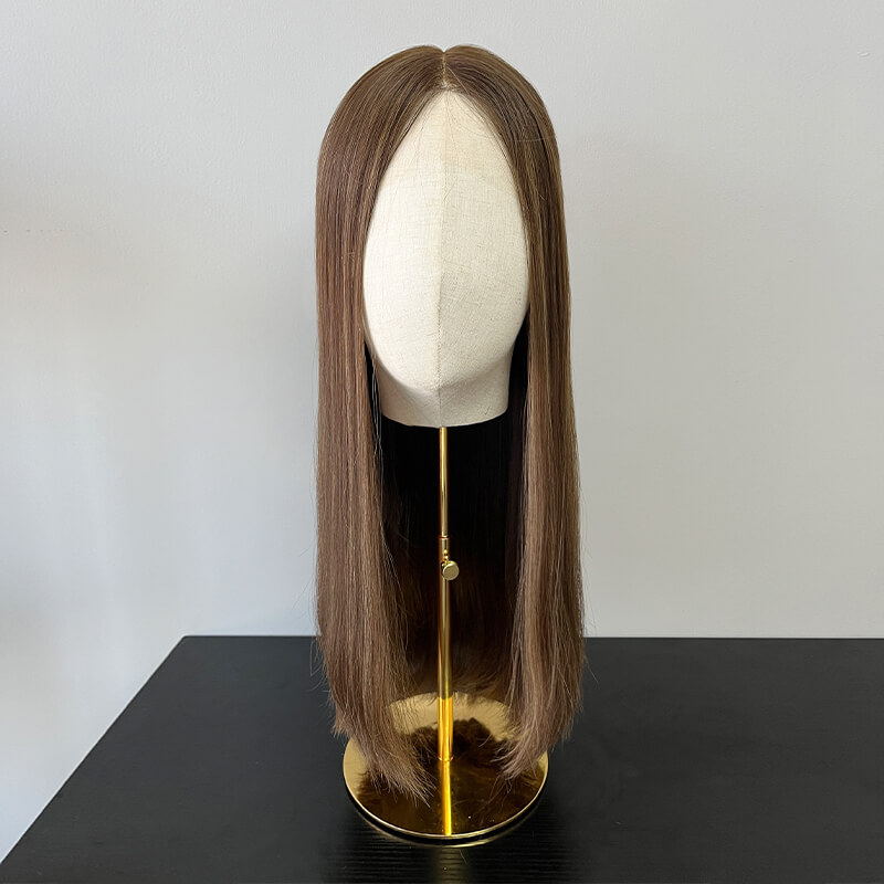 These exquisite 22-inch premium human hair wigs feature a subtly layered cut and a delicate lace top, creating a sophisticated and natural-looking style. Crafted from the finest Remy human hair, they offer an incredibly soft, sumptuous feel and a flawless appearance. Designed with the modern Jewish woman in mind, these high-quality wigs provide a comfortable, seamless wear and a stunningly realistic look that enhances one's natural beauty. Durable and long-lasting, these wigs are the epitome of elegance and quality.