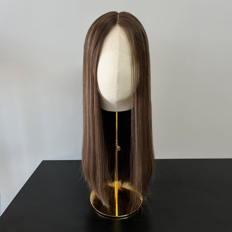 These exquisite 22-inch premium human hair wigs feature a subtly layered cut and a delicate lace top, creating a sophisticated and natural-looking style. Crafted from the finest Remy human hair, they offer an incredibly soft, sumptuous feel and a flawless appearance. Designed with the modern Jewish woman in mind, these high-quality wigs provide a comfortable, seamless wear and a stunningly realistic look that enhances one's natural beauty. Durable and long-lasting, these wigs are the epitome of elegance and quality.